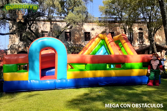 Este juego no sólo tiene una megaresbaladilla además tiene obstáculos, túneles e interactivos. Tus nenes se megadivertirán en este ¡gran inflable!