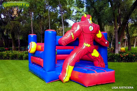 Súper divertido inflable de superhéroes, como Flash, Superman y Capitán América los favoritos de chicos y grandes.