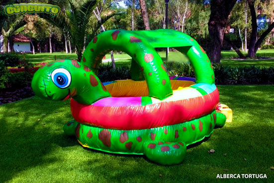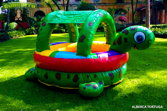 Bonita y segura alberca de pelotas con forma de tortuga para los más pequeñines, la cual contiene pelotitas donde tus chiquitines se divertirán con ellas.