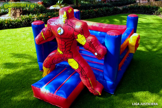 Súper divertido inflable de superhéroes, como Flash, Superman y Capitán América los favoritos de chicos y grandes.